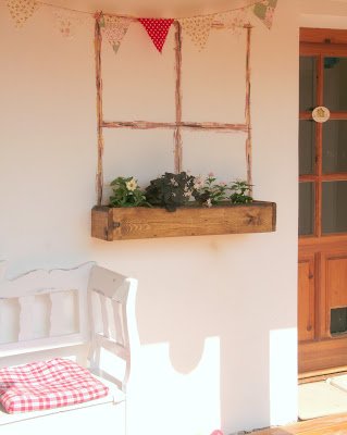 Majd kutakodtam egy kicsit a fiam szobájában, szerencsére találtam is temperát, azzal festegettem meg az ablakot. A balkonládát a ház ura készítette. Nem volt rá sok ideje, meg amúgy is 40 fokban kértem meg rá… Boldog volt 🙂