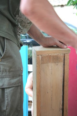 Volt maradék deszkánk, abból rakta össze, én pedig lepácoltam. Ismét Ő következett, fefúrta nekem a falra, majd jöttek a virágok. Nem volt itthon piros virág, – pedig azt szerettem volna- és ki tudta, hogy június végén már alig kapni valahol muskátlit??? Azért még próbálkozom a héten, hátha kapok valahol szépet.