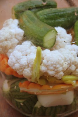 Vettünk hagymát, cukkinit, karfiolt, paprikát, kicsi zöld dinnyéket, pfefferoni paprikát, és persze uborkát kontrollként.
